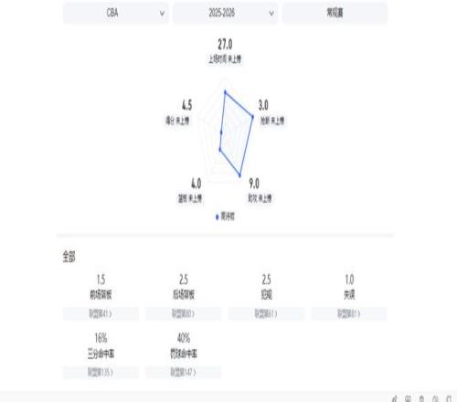 CBA新赛季2轮过后,高诗岩场均出场26.5分钟,可为球队贡献4.5分4篮板9助攻3抢断,投篮命中率仅为25%,罚篮命中率只有40%,三分命中率更是低至16.7%。