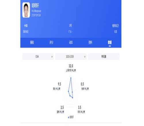 CBA新赛季2轮过后,胡明轩场均仅能得到9.5分2.5篮板3.5助攻,这样的表现谈不上糟糕,但也有失国手身份。命中率方面,他场均投篮命中率仅为31.5%,三分命中率低至21.4%